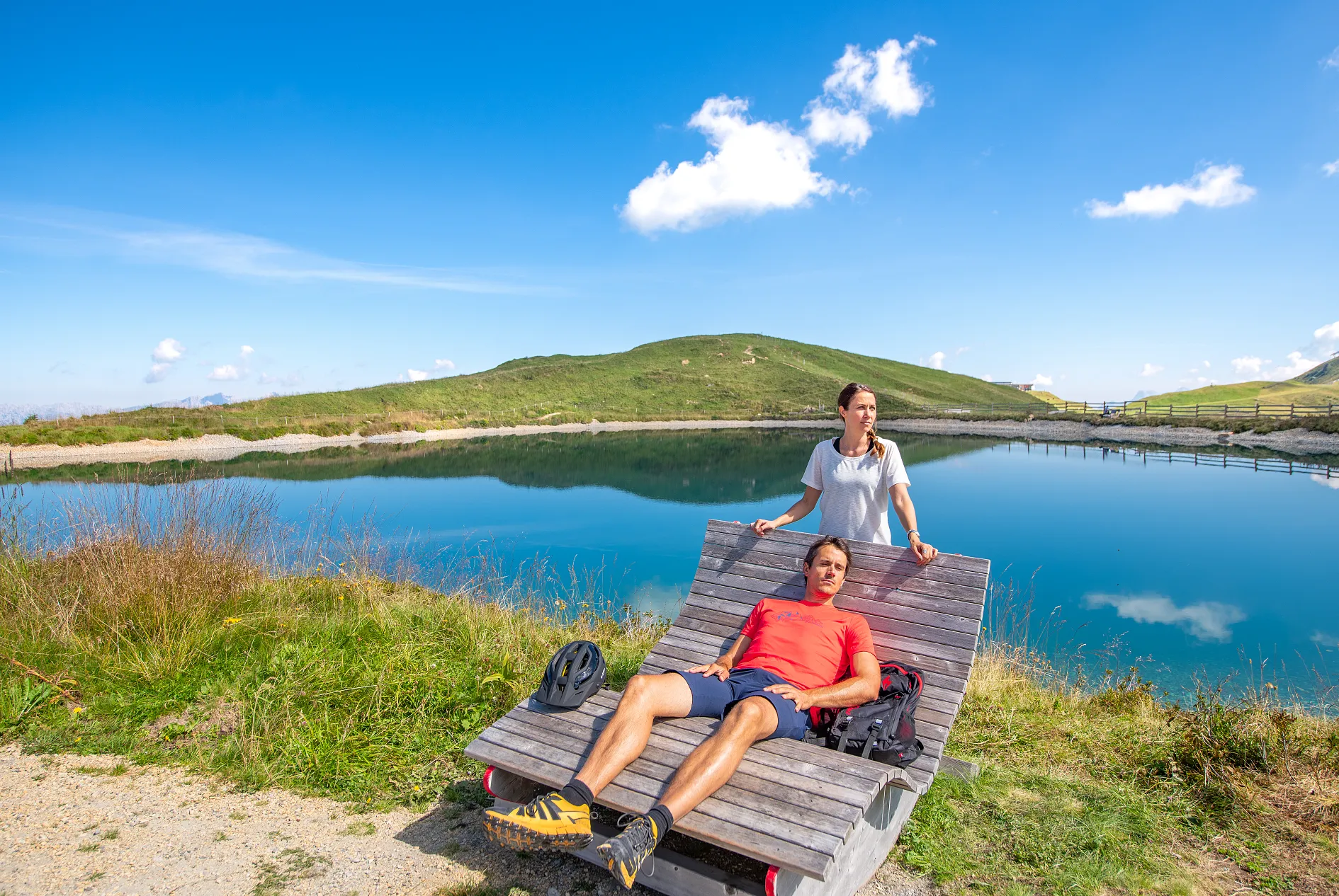 Hiking through gentle Alpine landscapes accompanied by breathtaking panoramic views of the surrounding mountains – this hike takes you past four crystal-clear mountain lakes.